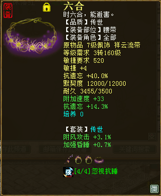 因为睡人一直被打压,其实很不想展示的,但是顶不住小枫枫的麻辣烫诱惑,最后就说点心得吧! 先上一张站街无状态无卡的属性图: 这样的属性,相信很多人都做得到。玩睡人最重要的,就是要稳,特别是在现阶段睡人被打压的情况下! 所以: 1.四阶虽不是必备,但能上还是要上一把,因为高忽视的同时,还给你带来22点强睡,无论从性价比还是属性上看,都是很好的选择! 2.不要只堆忽视,强法也要堆!套装属性上单件最高能带来1点强睡,而衣帽选择16级高强的,然后洗双减属性!这样能得到高强的同时,还不会影响敏捷或者灵性! 3.因为现在定力怪的存在,所以尽量要加灵性,加多少看需求,个人比较喜欢加到能吃到仙的灵光!以前有通灵睡的时候,还会加多点,不过现在换了武器,可以相对高敏点! 4.星阵是个好东西,有条件就上个忽视睡宫位,能带来3点的忽视,效果非常好!实在不行,强睡也可以,也有个5点这样! 最后,再提醒一下,玩男人,就是看几率,所以有时候脸黑,请放宽心!实在不行,就玩混人吧,同属性的混人,任务的时候真的是比睡人舒服! [编辑:韦小贝]