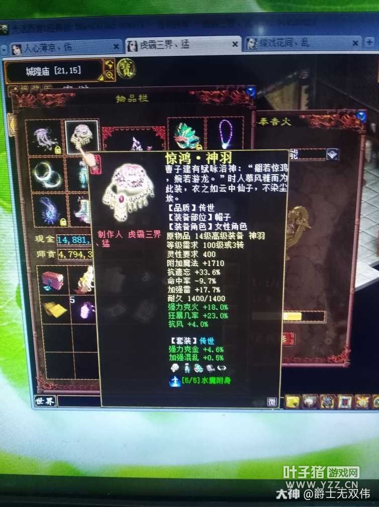 由于已过来玩大话最疯狂的年纪,现在最放不下的还是因为情怀,所以纯手工打造一枚克火强雷惊鸿仙,不求干掉BOSS,只求平稳日常,您来看这属性是否合格? |