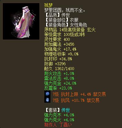 这年代玩女鬼的绝对是真爱了,这名克金鬼火鬼,在各路大仙龙族的夹击下能否杀出重围? 来欣赏一下她的全身装备就知道了: |