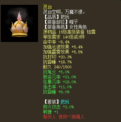 神兵龙妹装备小秀,话说骊珠儿的神兵锤子也是蛮贵的,这套装备看看如何: 灵台帽子