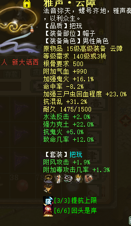 在五开克土队伍中单人回复辅助的男鬼,同时兼具鬼火输出的手段,看看这男鬼的两套属性和配装: |