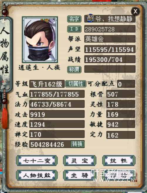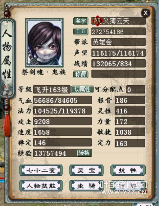贫民克火五开任务号展示,日常任务都能做,带装备无召唤兽,以下是任务吃F属性图,基本到这个配置就能通杀了:
