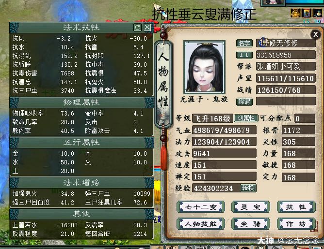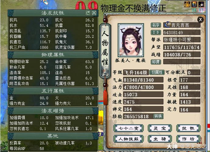 这位玩家打造的四开大力队有限意思,连击附混打气法宝龙;连击打气强牛魔(没做极限强牛;做的功能下雪+明心);2000敏10万功传世金鳞大力(换一对戒指1700速度11万功);再加上铁鬼(本身不想弄成这样,大力队垃圾鬼就够用了其实),展示一下各自的属性吧: |
