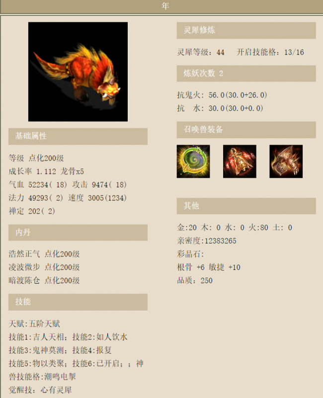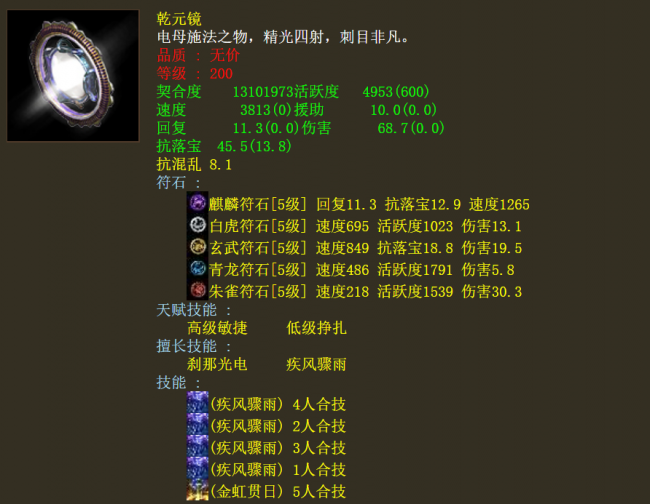 从龙族出世起,阁子中超过十万元售价的龙号一直不多,但近日一50万元人民币售价的大龙出现后,瞬间引来了近千人的收藏! 一起来看看这位骊珠儿玩家的号,六阶仙器,六级藕丝,化无神兽...何为顶级敏龙,这个号或许能代表一二。 ![]() 飞升200级号,这个号底子也是相当值得一看! ![]() 400+力量,千敏加点,最终有2300+的速度和8万+的攻 ![]() 这是此号的物理属性 ![]() 套装收录非常多 ![]() 猜猜她身上穿的是什么套?接着来看! ![]() 星盘收录情况 ![]() 法门全满 ![]() 秒法带的孩子 ![]() 大砍带的孩子 ![]() 武器登场!六阶大锤子一对! ![]() 这是青鸾套,抗鬼火致命克火连击帽子 ![]() 专为女龙而生的五阶衣服 ![]() 五阶大力链子 ![]() 敏度速度为王,直接上六级藕丝! ![]() 8级龙族护身符,几近完美 ![]() 加速度致命披风,这披风不便宜... ![]() 连击速度面具 ![]() 致命加速挂件 ![]() ![]() 强霹雳克木的赤马阵 ![]() 克水加攻星符 ![]() 敏速星符 ![]() 灵宝金击子 ![]() 超敏灵宝镜子 ![]() 来看宝宝,千万亲密年兽 ![]() 画中仙展示 ![]() 画中仙之二 ![]() 化无水灵仙 ![]() 化无果子 ![]() 200级黑孟极 ![]() 孟极之二 ![]() 当头铁扇 ![]() 最后是作鸟赭炎,如此强大的女龙,谁接手可以直接报名比武了吧? [编辑:bieyu]