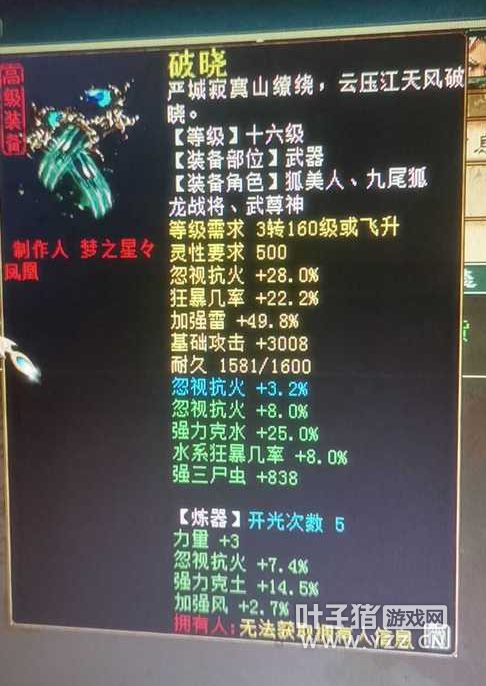 克水与克火,目前大话西游2游戏存在的两大五行巨头,克火任务无敌,克水PK玩家众多. 今天讲述一位平民克水玩家的克水仙的故事. 她玩的是一个火法克水大炮,众所周知,平民玩家里,玩的比较多的就是忽视火和忽视风,因为其他法术在16级武器上没有忽视属性; 忽视火又相对要少一些,因为以前的一些设定原因,导致火法伤害在一些层面上普遍不如风法.所以这里有一个小空子可以钻,火法的极品装备相较于起飞的风法装备来说,要便宜不少. 一起来看看今天这位高忽视平民平秒残梦大炮吧,看看还可以如何提升; 800灵性,1439敏捷