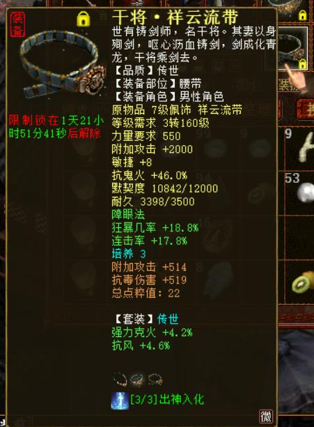 也不是必须要遗忘腰带才能三抗的,衣服帽子抗冰或者忘,鬼火腰带一样三抗满。加上点粹补一点点很轻松。所以别买什么遗忘绝版两千多的腰带了。