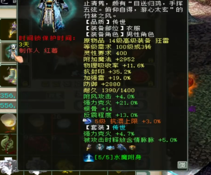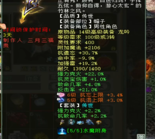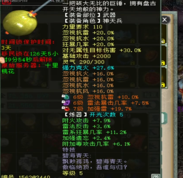 玩家展示自己打造的高克容止风法大炮,用的是五级神兵,蓝字炼化也是很给力,基本满值,再来看一下他的伤害和装备搭配! |