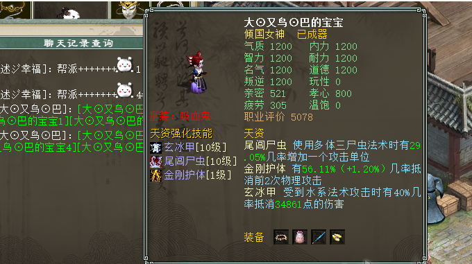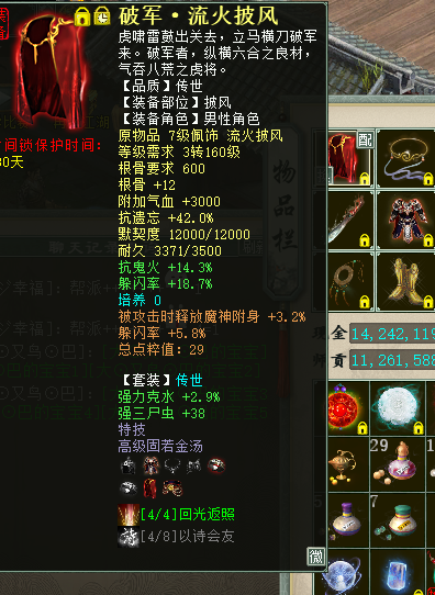 3、我的实战经验,三尸是很少反震死自己的,当然躲闪够不够的问题也不用担心,换双躲闪鞋子、换三世龙修正,血依然有小80万,而躲闪直飚187!