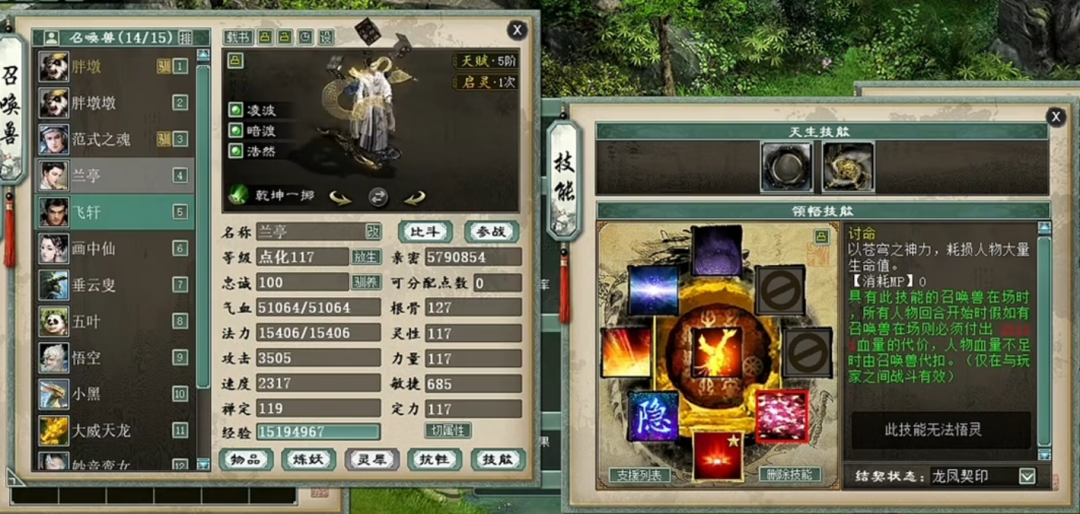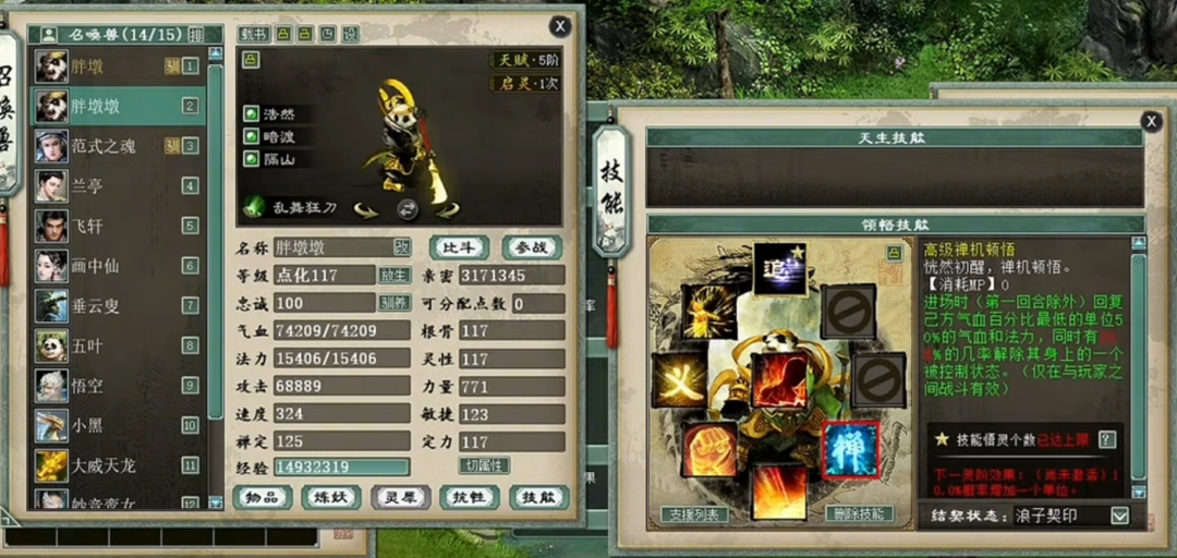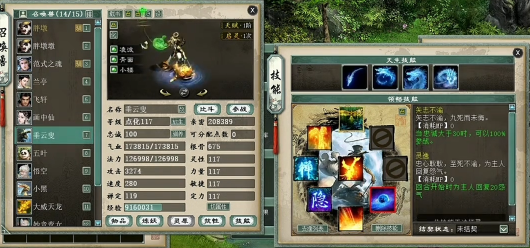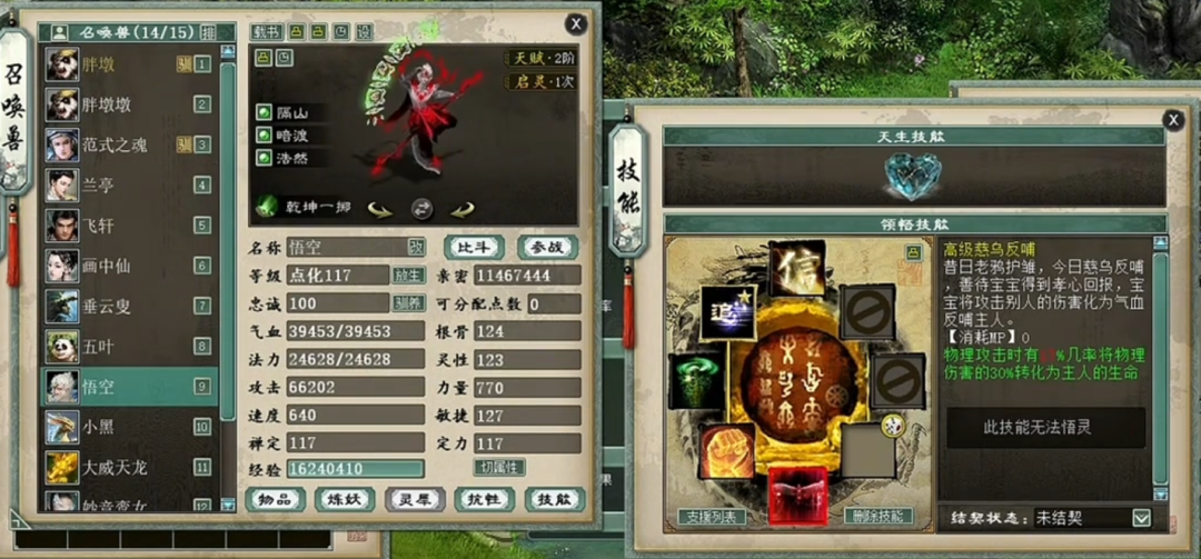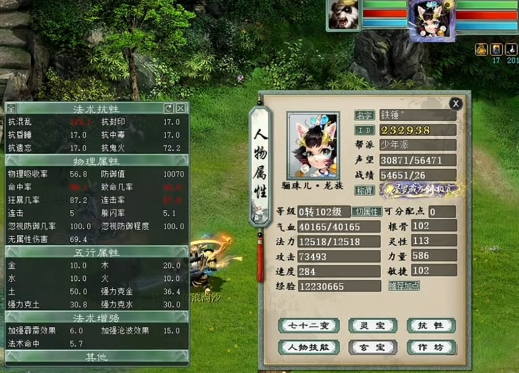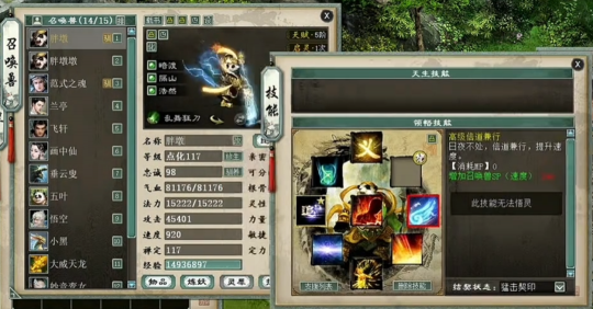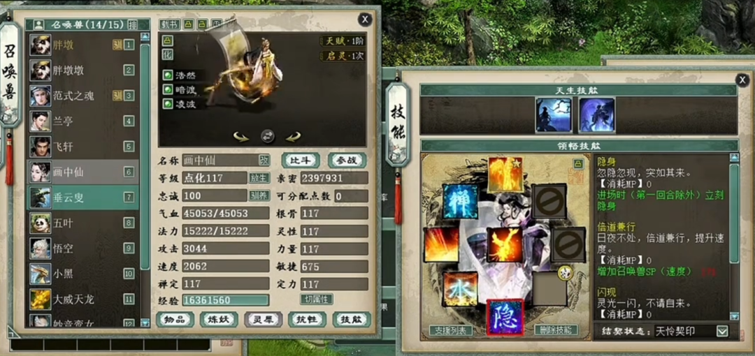 一个实力未转号的展示,先看下属性,装备就展示下特技无级别的四阶鞋子,然后主要晒下身上的神兽和鎏金宝鉴召唤兽吧,欢迎欣赏。 属性及抗性展示 四阶无级别鞋子 义金分花浪淘沙1 义金分花浪淘沙2 信土分花范式之魂 隐身兰亭 隐身飞轩 隐身克画中仙 隐身垂云叟 五叶 信土分花心猿 义金分花孟极 [编辑:莫听雨]