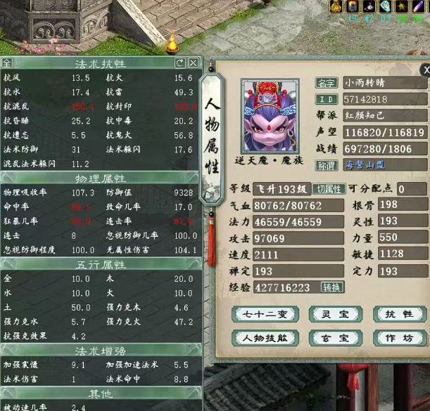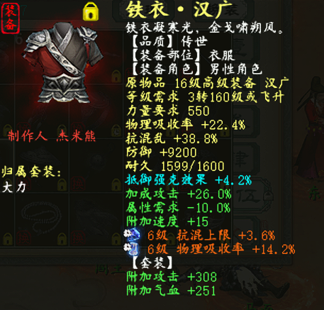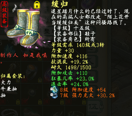 大家来欣赏一个多功能男魔,可抽,可牛,可砍,三组属性镇楼,后附装备,欢迎点评。 敏攻男魔属性 抽男魔属性及抗性展示 强牛51.6属性及抗性展示 五级连击破武器 衣服 项链 鞋子 双忽视抽星符 双无属性伤害星符 护身符 左戒指 右戒指 左戒指 腰带 左戒指 右戒指 挂件 [编辑:莫听雨]