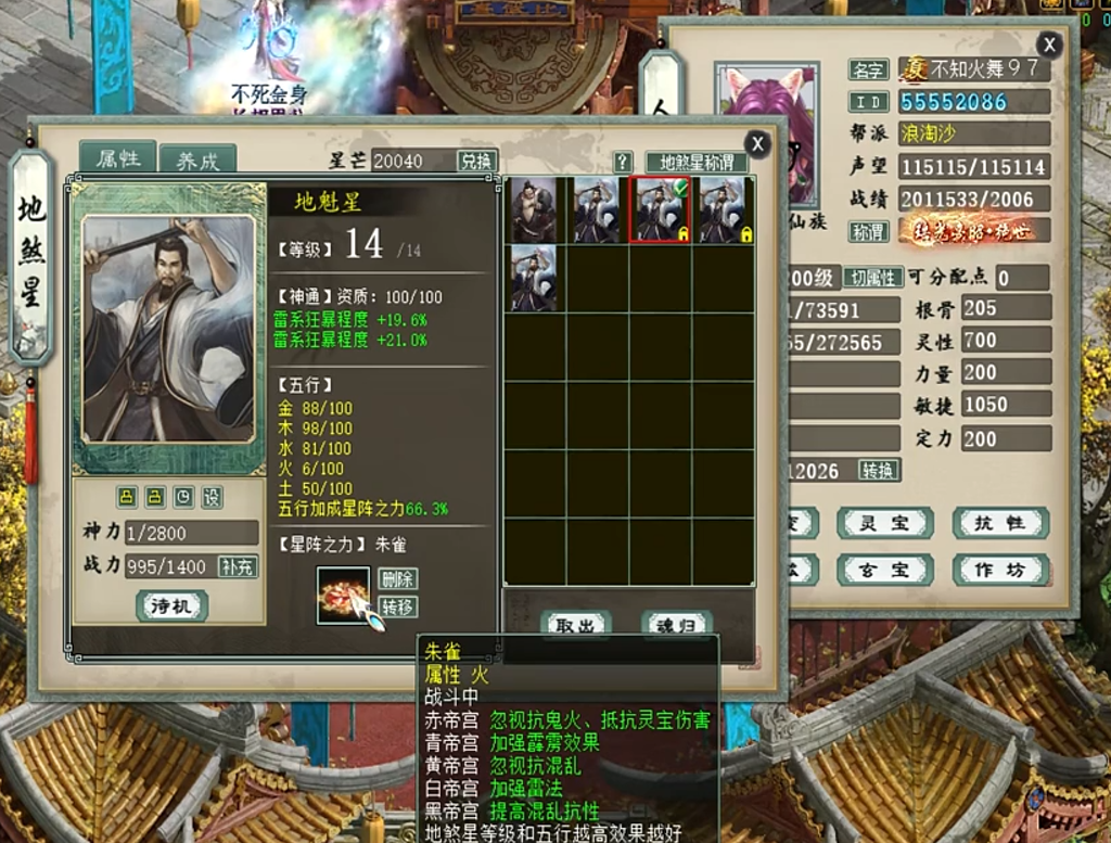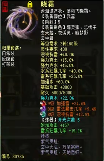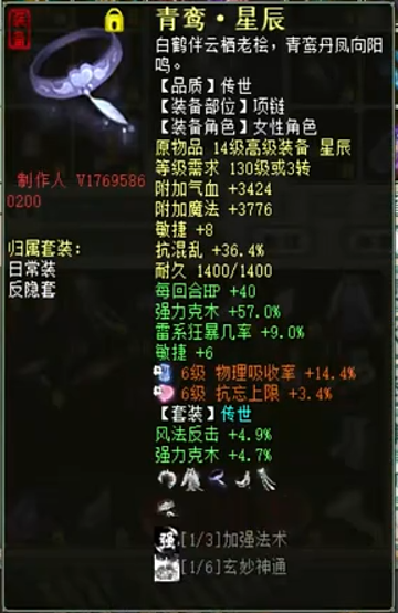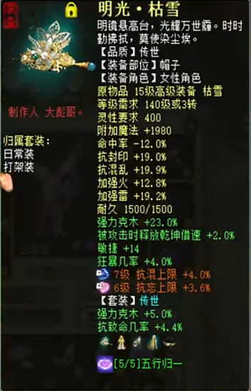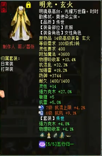 欣赏一个五阶克木仙,变黄金兽卡站街强雷93.3+雷暴几率53.1+雷暴程度40.6,以下是属性详情、装备展示以及吃狂暴符后的秒伤。 属性及抗性展示 五阶武器 衣服 帽子 鞋子 项链 护身符 右戒指 左戒指 披风 低级趁火打劫面具 腰带 挂件 子虚明察黄金兽 双800小孩 双雷法程度朱雀星符 秒转鬼1 秒转鬼2 秒木人桩 [编辑:莫听雨]