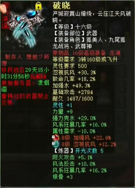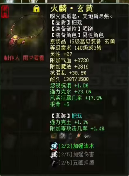一位叫“刮痧炮”的克水风法仙展示,属性为强风89.5+忽视风49.6+风法狂暴几率85.2+风暴狂暴程度39.7,看伤害表现如何? 属性及抗性展示 法门满 伤害秀1 伤害秀2 伤害秀3 武器 帽子 衣服 项链 鞋子 挂件 赤马风法狂暴程度星符 [编辑:莫听雨]