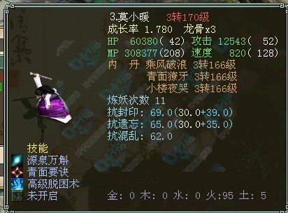 相关链接:不离不弃!我们永远都是大话人 的下篇,雨家族的召唤兽展示。不过不能全发,带好技能的都不发了,把一般的发,先秀下俺们家族的几个号和我的几个号: