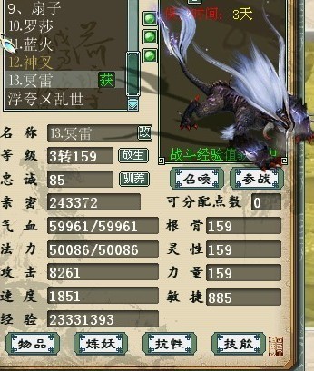 大话西游2:预览新宠冥雷及妖火狼数据