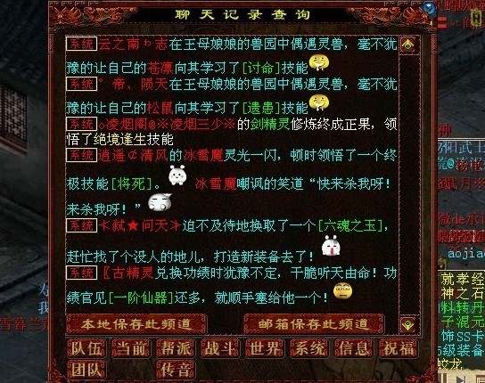 推荐阅读:此生VS浅墨:我看到的是漫天飞舞的毛爷爷 自终极修炼推出以来就大受好评,几乎每天我们都能见到某某玩家修炼某某终极技能的系统提示,这不,某玩家就从4月15号到5月15号这期间(由于是玩家爆料,由玩家在整合,所以不保证是全部终极,请君细看),整合了服务器某某服务器被几率终极技能的喜剧瞬间,请鉴赏。 <<<点击进入大话西游2论坛讨论>>>
