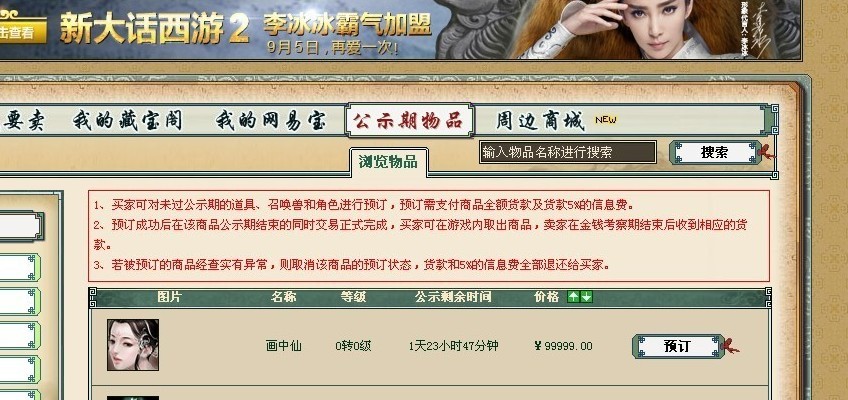 - 第6页:七侠某玩家得画中仙,第一时间上到藏宝阁,价格10万元