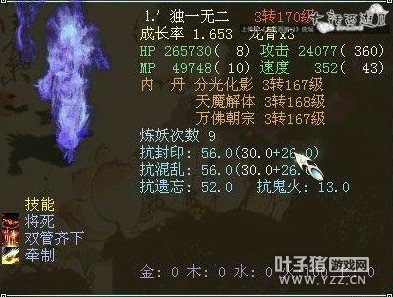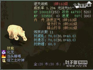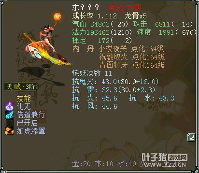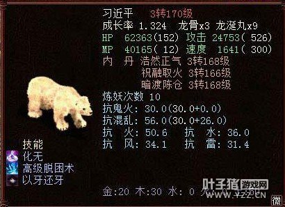 >>推荐阅读:汉乐府:满天赋男鬼售价22000元值不值 随着时间的推移,终极技能召唤兽越来越多,终极神兽及双终极技能召唤兽也是屡见不鲜,更有甚者价值最高的年、画中仙和白泽都已有终极相称。据小编所知,目前共有化无年2只,化无画中仙一只,终极白泽一只,集3终极于一身冰雪魔一只……不得不说只有高富帅才能用得起啊……除了这些,还有那些终极神兽和双终极技能BB呢?一起盘点一下吧,欢迎补充! <<<点击进入大话西游2论坛讨论>>>