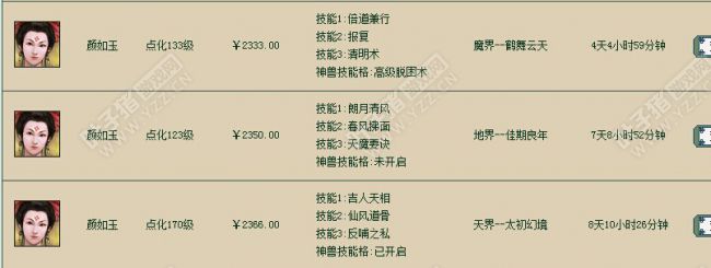 不带隐身的似乎都是1800这个价了 颜如玉: 曝光的新技能:慧心巧思:若受到的伤害小于最大气血、法力值之和的70%,则可以免这次伤害,每5回合触发一次。 目前CBG最便宜的美女。2100,似乎没有太大的价格改动4开无隐身166级的2298. 看来没有隐身的美女几乎都在2300左右波动 大浪: 曝光的新技能:乱舞狂刀:刀法极高,常常一刀之中砍到多个目标。物理攻击时若触发隔山,隔山目标有30%几率增加1个,15%几率增加2个,有10%几率增加3个!(真心不错的技能) 带义金和分花的3300 一推3600的 最便宜的3675,与之前没有什么改变 3700之间波动,无隐身,4开以下的 带隐身的3900 带隐身的4200左右 范式之魂: 被曝光新技能:黄泉一笑:物理攻击每致死1个目标,可为本方死亡单位回复60%最大血量(优先主人),每回合最多可回复2个目标 所以综上所述,五常神兽价格目前还没有多大的变化。日后会什么样的走势呢?各位小伙伴你觉得呢? <<<点击进入大话西游2论坛讨论>>>