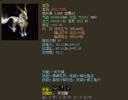 近日见一终极技能的画皮娘子,卖价竟已跌至700元的价格,不禁惊觉这类大保健在经过终极技能的加持后,似乎价格也在悄然发生着变化。今天就要带大家来看看,龙马、龙君、明王、画皮,四年四大标志性召唤兽,那些携带终极的大保健们如今到底抄底价为多少?