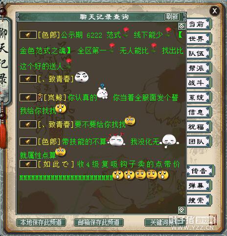 有玩家跟叶子猪爆料,有人在区里夸下海口,说如果有人能够找到比他的范式更好的,就把它白送掉。究竟是怎样的FS,让他如此自信? 服务器:龙的传人 主人公:色郎 玩家色郎在铃铛出售范式,并豪言,如果有人找到比他的更好的,他就白送掉。 |
