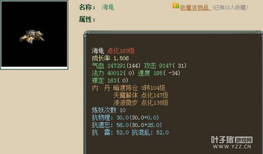 今天逛藏宝阁,无意中发现一个售价1700元的普通海龟,没有终极和隐身组合技能,也没有觉醒套装,究竟有何亮点? 一眼看去,这宝宝非常普通,非高成长、等级低、无龙骨,难道是因为颜值(小海龟还是挺萌哒)?收藏的人还不少,12个,看来关注度还不低。 小海龟