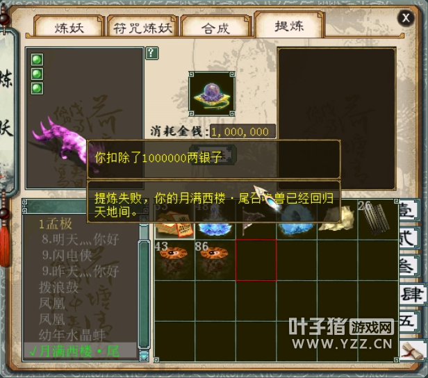 这个失败了 3.取之有道黄金 还是失败... 4.克火神兵 继续失败...这个可惜啊 5.克水水灵仙 成功了第二个,克水可以卖个高价,还不错 6.吉人天相三尾怪 最后一个也失败了