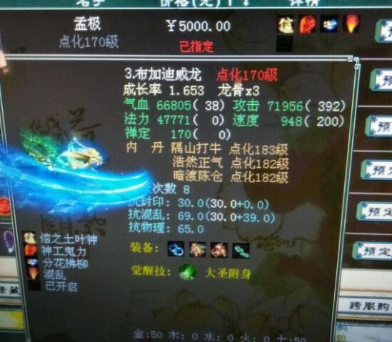 下面这只带4星半大圣附身的孟极,竟售5000元的高价,看看其属性,您觉得是买它好还是买范式好? [编辑:韦小贝]