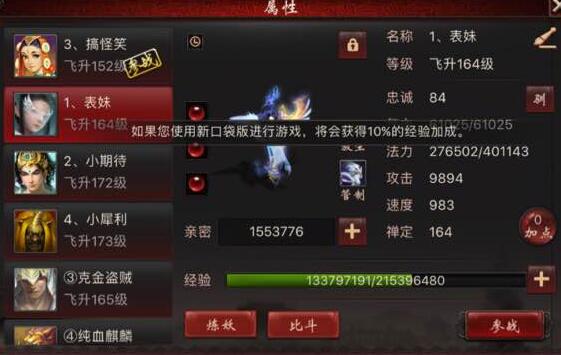 这位玩家家养的妙音鸾女,40万法,1000敏,155万亲密,展示一下属性和平日的伤害,非常不错! |