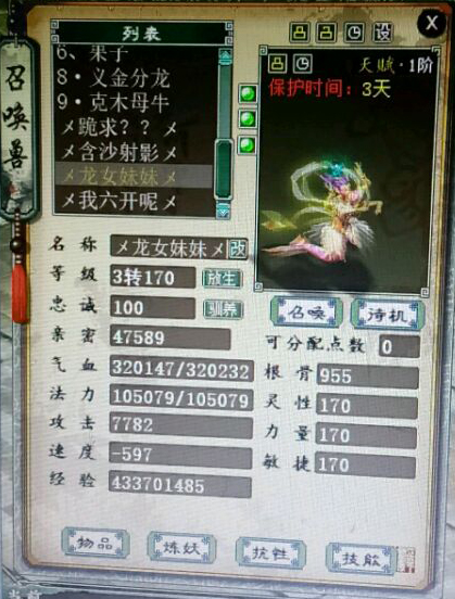 这位玩家的天龙女练到了3转170级,然而还只是双开格子,难道注定了“铁疙瘩”的命运? 玩家“餐餐有鱼有虾”表示,直播点化吃丹走一波。