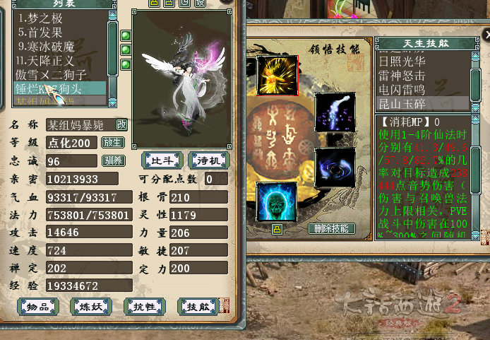 大话西游2鸟女200级成就达成 心血养育属性伤害展示