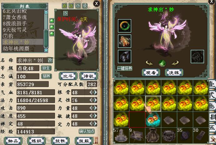 三只刚刚点化的宝宝吃丹开格子,看完之后,深深佩服欧皇的脸太白太白了... 这样的神人只能膜拜,不能模仿啊: |
