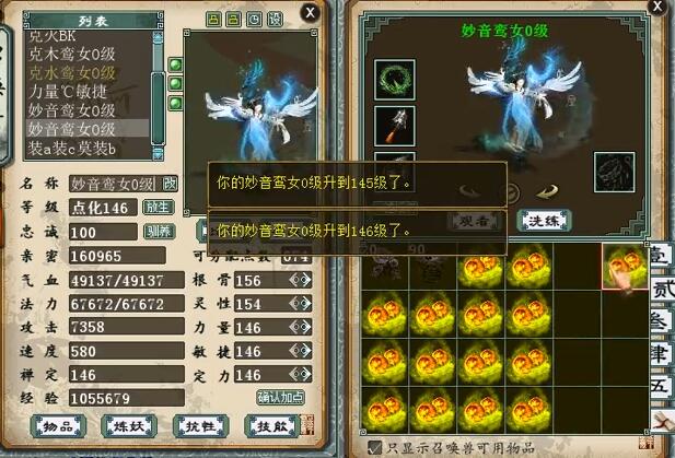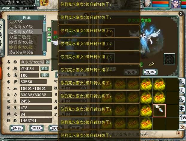 多只鸾女同时点化,同时吃丹吃经验开格子,场面非常的宏伟,就是不知这格子开得给不给力呢? >>>推荐阅读:一周囧图:强法200暴力神仙 4000敏魔初现 下面就来见证一下这几只鸾女的命运吧: 多只0级鸾女