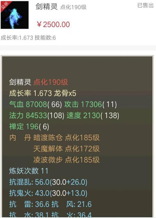 对于天天关注阁子的玩家来说,如果发现非常便宜的好货没抢到,真心是件非常郁闷的事儿... >>>推荐阅读:一周囧图:一周囧图:石头蛋蛋也逃跑 化无龙马见笑 就像是下面这只剑精灵,这位玩家看到的时候已经被人抢了,您不妨来看看这只剑精灵算不算非常便宜? 2500元剑精灵,还不是神兽~