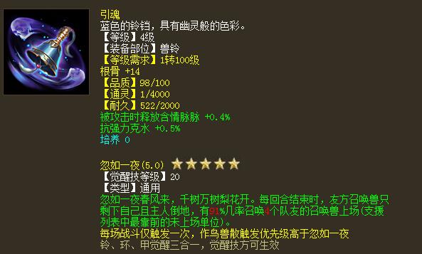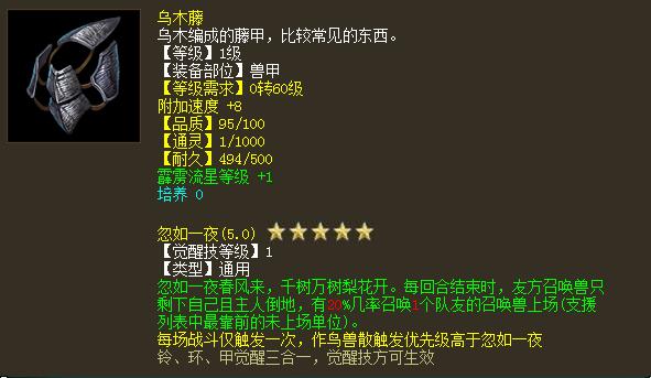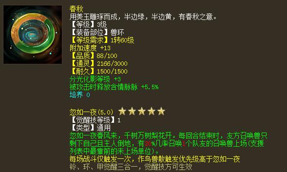 欣赏几套很不错的五星级召唤兽装备,并且是非常热门的存在,不知道哪位土豪会收入麾下? 先看一套忽如一夜: |