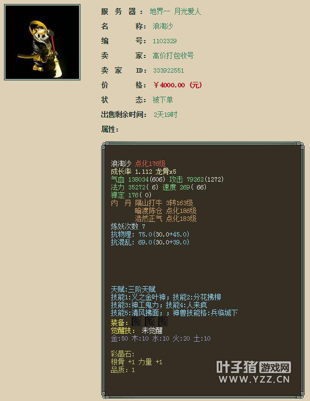 新资料片中会增强神兽似乎已经成了板上钉钉的事,消息一出,疯传五常神兽只要是价格便宜的,都被一扫而空了? 做个记录,看看现下五常神兽的价格,待新资料片出来之后,看看价格是涨是跌? 先来看四下的五常神兽价格: 四下的神兽相较四上要贵,最便宜的垂云叟,3300元