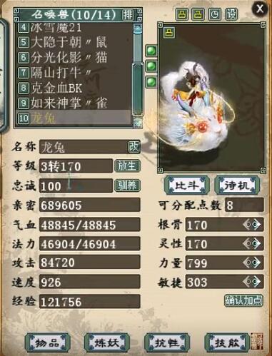 龙兔点化吃聚魄,吃丹升级,看看最后开格子的战果如何! |