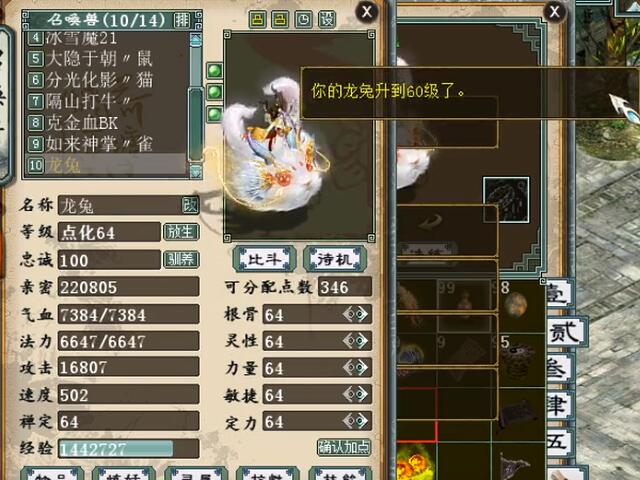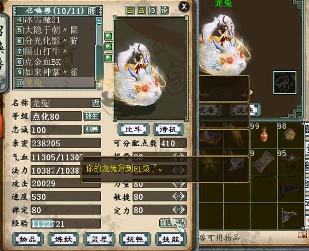 龙兔点化吃聚魄,吃丹升级,看看最后开格子的战果如何! 3转170的龙兔,直接点化