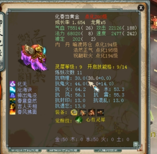三、法宝及星卡展示 四、召唤兽展示 化无画皮