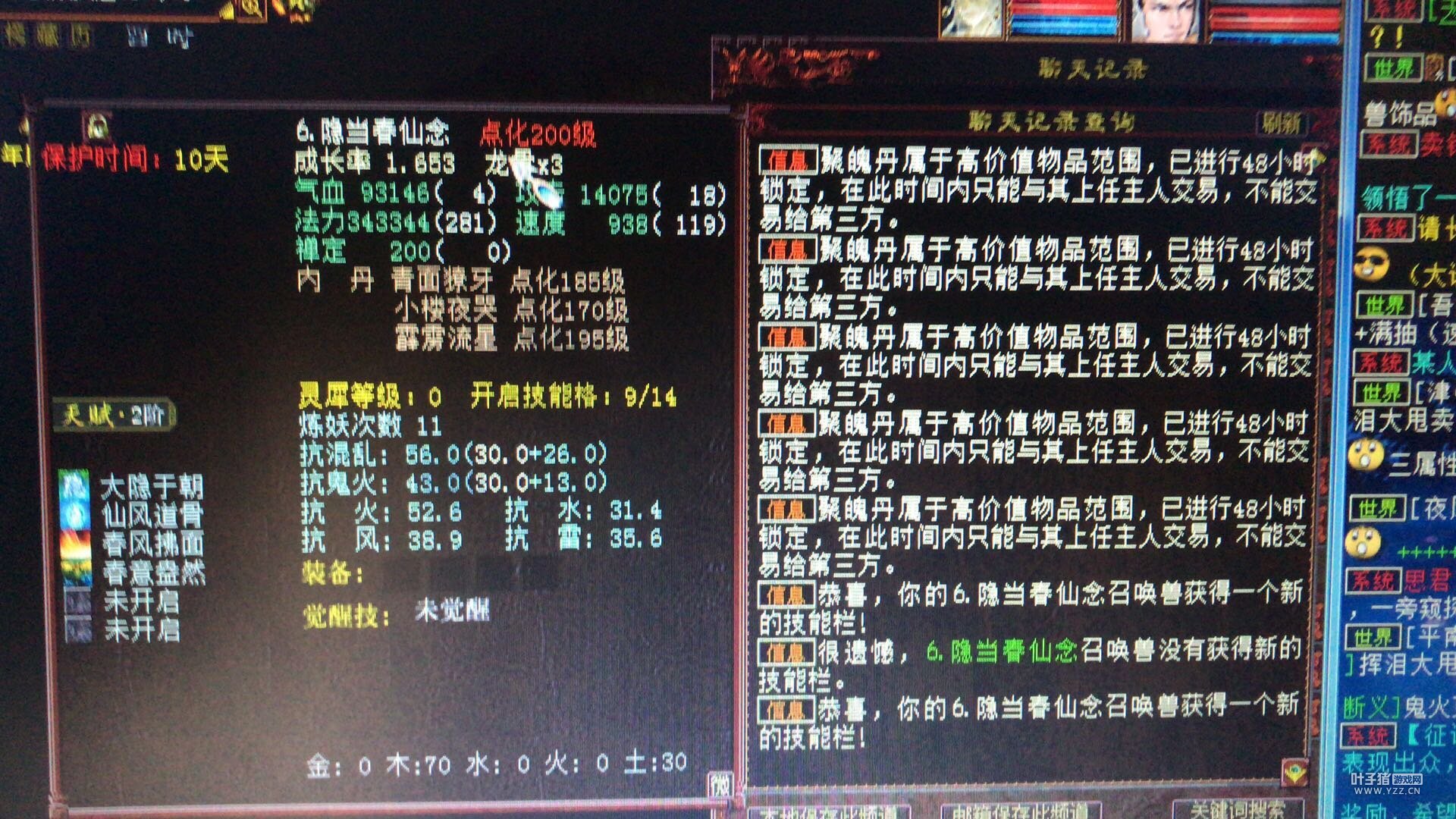今天给老铁们表演下如何给200级四开的黑念顶格子! 下面开始我的表演! 交易五个聚魄丹只用了三个就顶开了两个技能格! 好没表演完技能格就开完了,表演到此结束! 停!打住打住!刚是开个小玩笑,因为我的内心在滴血…… 老兄,你肯定说我是赚了的,而事实是这样的,我一直在给我一只神兽顶格子,结果技能一直被顶掉,上火,于是决定拿黑念做做实验,最终还是亏欠的。 还好黑念6开,不然我不知还得烧多少钱。 最后介绍下自己,我是昨日分享天梯一回合翻盘的血队队长男仙夜恋 这是当时翻盘的剑精灵全貌: 我所在的服务器是爱马仕离开的那个鬼区——太初幻境,现在移民费用太重,算了一下大概要4000多元,神兽就好几头,不然我挺想去齐云灵脉的。 [编辑:木棉朵朵]
