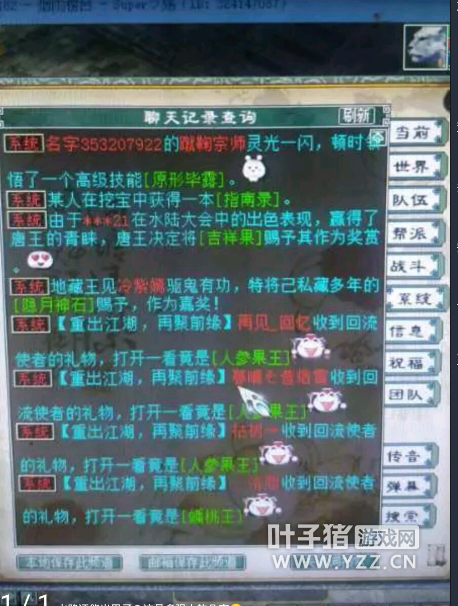 各位小伙伴大家好,今天又到了最新一期鸡率报告时刻,让我们今天来看看有什么有趣有好玩的几率时刻呈现给大家把? 一、这张老图谁还记得? 能认识这张图的玩家,少说也都是拥有十几年的大话西游2游戏经验的老玩家了吧?想一想时间过的是真快,一眨眼,十几年已经过去了,希望所有玩家珍惜当下,开心过好每一天,人生短暂,也不知道还有多少个十几年在等我们,希望我们和大话可以一直走下去. 二、项链这么值钱么? 话说新区的土豪真的是好任性啊,克火41风暴5点的项链居然可以卖这么多,看来克火目前的任务第一神装真不是盖的. 三、水陆大会得到吉祥果? 这个真的是百年难得一见啊,哪位玩家见过更奇葩的?水陆大会还出吉祥果么?第一次听闻......