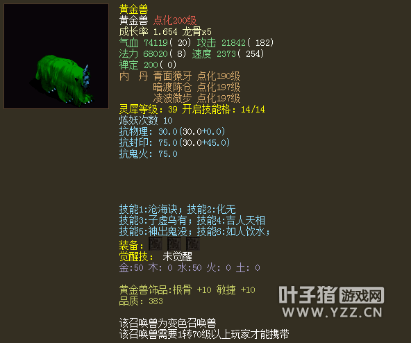 顶级终极技能化无,寻常召唤兽想得一个已经难如登天,可有些绝世宠儿偏偏得了一个还不满足,还生生从几率大神的手中抢出两个甚至三个终极!这一来无论是价格还是强大无匹的实力,都足以令拥有它们的玩家陷入疯狂! 那些深藏在超级神豪手中的多终极宝宝自然难以得见,但我们可以从如今摆在世面上的这些神宠得窥一二,看看他们的拉风外形,也看看它们如今的身价已经涨得有多夸张! 先看最便宜的一只,召唤兽本体为非常大众化的黄金兽,但在拥有了化无和子虚两大终极之后,已经被摆出了38万人民币的骇人售价! 第二只,同样是黄金,但技能则变成了化无带当头,实用性无需多言,最顶尖的攻守兼备能力使它拥有了40万整的售价! 第三只,化无绝境墨绿赤焰妖,45万的售价令人叹为观止,谁让他既有化无,又有绝境呢? 第四只,化无当头迦楼罗王,罕见的存在罕见的价格,卖价直接标出了55万的天文数字~ |