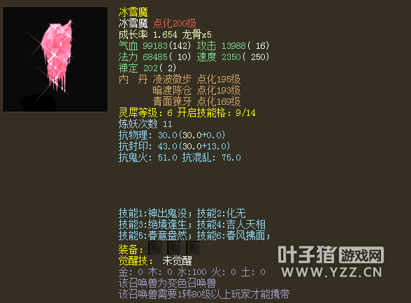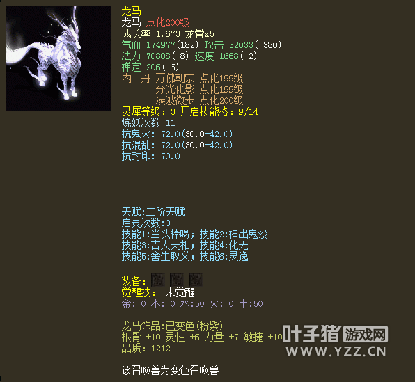 第六只,大保健画皮娘子,可攻可敏,化无带当头,出场就能令对手身陷险地,68万售价各位觉得贵否? 第七只,为大保健群体打下响亮名号的龙马!同样是化无带当头,价格和上一只画皮相仿,但它登场时带给对手的压迫力绝对胜过画皮! 第八只,敏孔雀!绝对的大力宝宝却采用敏系加点,当化无和绝境同时出现时,谁能想到它竟身怀这样的绝技?售价七十五万意料之中! 第九只,从十数年前诞生起就有“平民神兽”之称的冰雪魔,技能完美地出现了化无+绝境的组合,主人也将他标出了88万的炸裂高价,真正的一旦拥有,别无所求! 第十只,化无带绝境的松鼠登场!满级后的敏血数据极为出色,非常适合用来做一只战术宠,同时它的外形看似萌蠢无害,但身上的两个终极却可以在关键时刻力挽狂澜! |