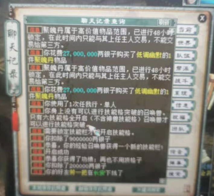 太疯狂了,一玩家给自己的范式开启技能栏,狂点聚魄丹,这家伙,全区聚魄丹都要跟着涨价吧?