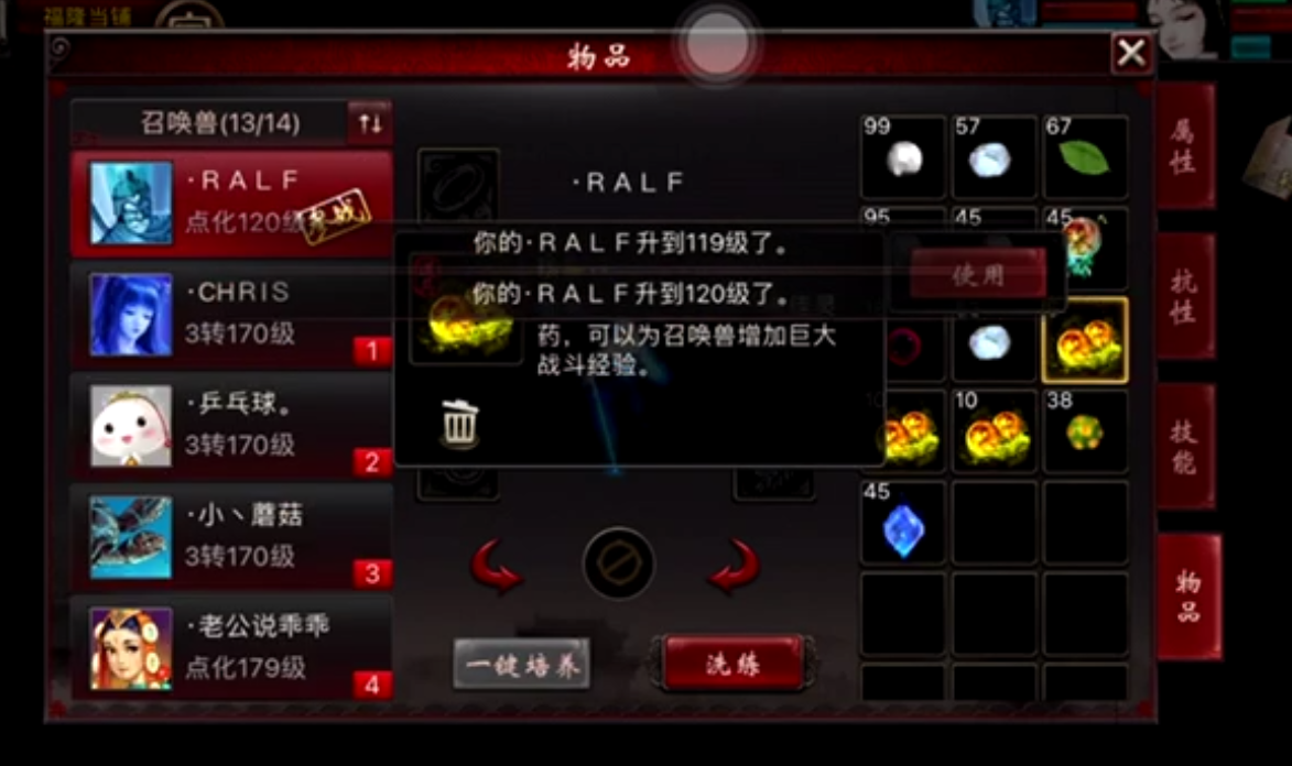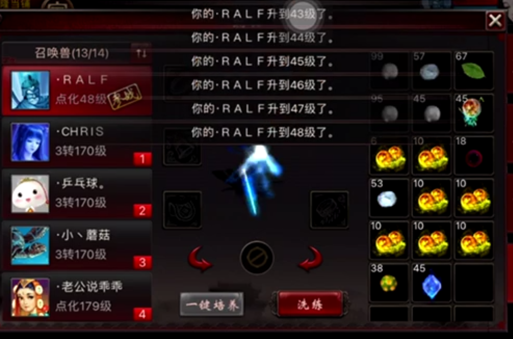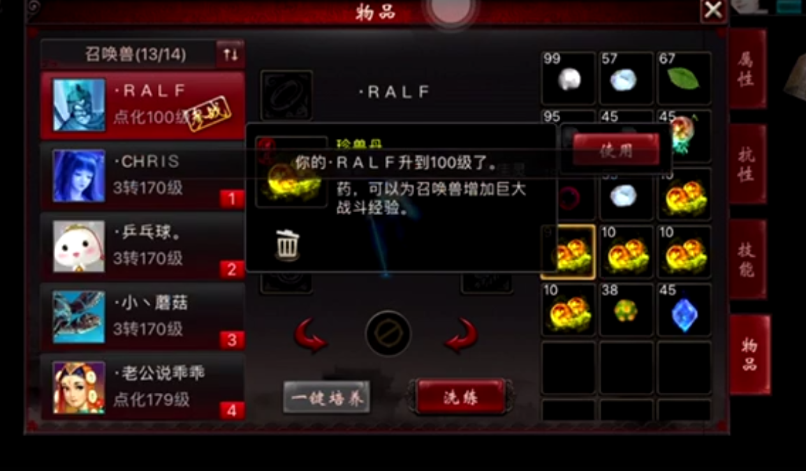 玩家的剑精灵已经点化,准备了点珍兽丹,准备玩一玩几率,看看别人的50级就能6开,咱们是否也有这样的运气!