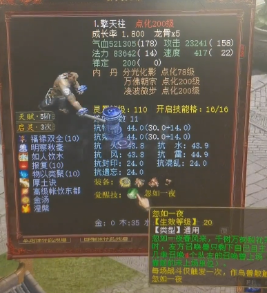 对于喜欢PK的仙族玩家来说,站桩宠物绝对是必不可少的配置!而下面这位大仙真是壕到没朋友,身上的六只站桩全是神兽,而且全配备了极品属性的忽如一夜,爱了爱了! 明察忽如一夜哥俩好