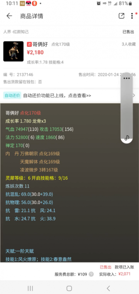 谁曾经还不是大佬了?只不过在岁月打磨中逐渐凋零,特别是打开藏宝阁,看到多年前的出售记录时,那种心疼的感觉简直无法形容...... 今天要给大家展示的内容,是一位玩家在多年前售出的大话西游2神兽,这个价格真是看得人心惊肉跳! |