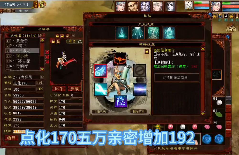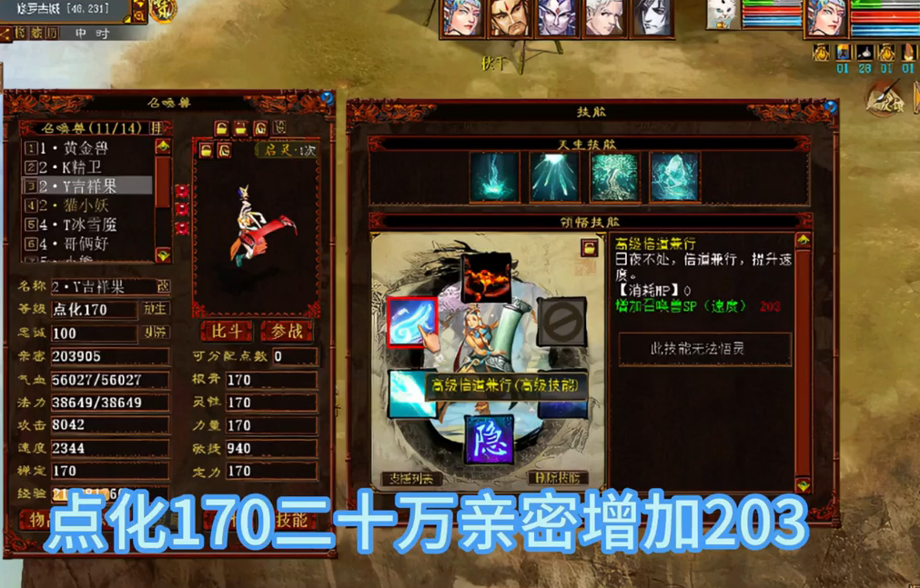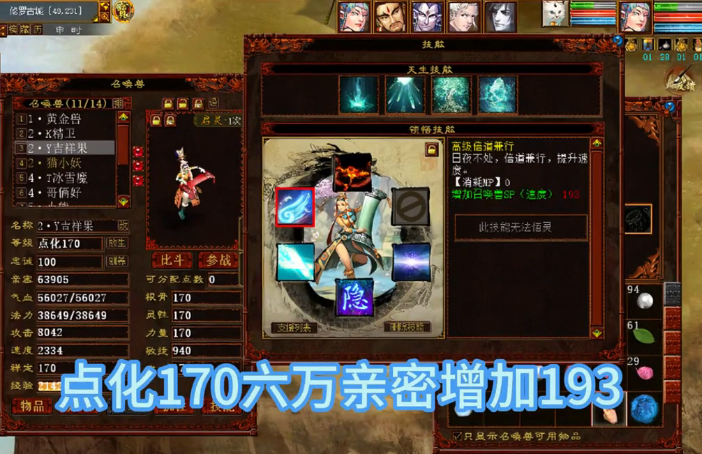 大话西游2召唤兽技能效果,很多都和亲密有直接关系,特别是一些属性加成类的,由于加成会直接用数字显示,所以相对来说更加直观! 那么“高级倍道兼行”到底能加多少速度,大家有了解过么?今天就来全方位展示一下,看看3亿亲密能带来多少加成! 2W亲密增加187