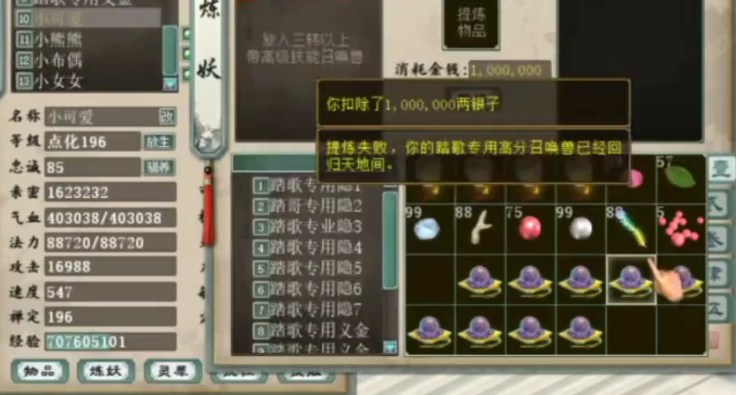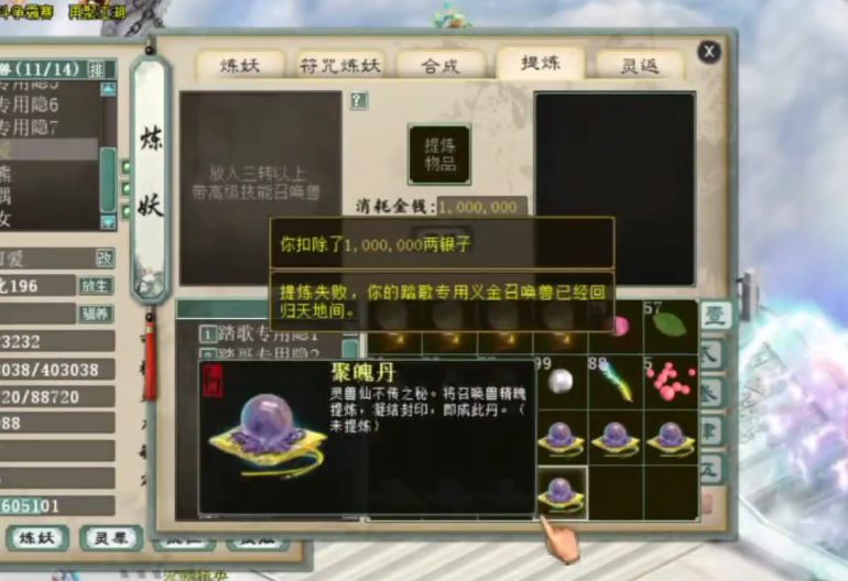 大话西游2高价值宝宝容易失败?七隐身三义金提炼中