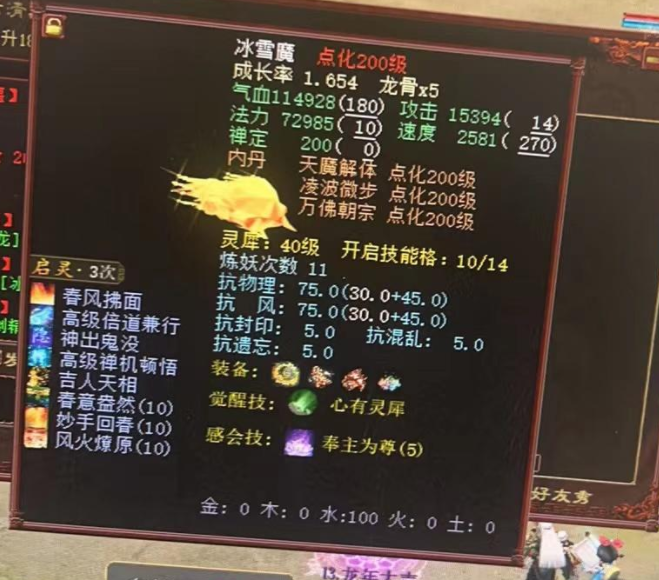 5根大话西游2龙骨全爆敏,这对于寻常玩家来说可遇不可求,但相对于大神群体嘛,追求极限数据才是乐趣之一,今天就为大家展示一位老铁的宝宝收藏,只能说完美无缺了! 初敏270的子虚冰雪魔