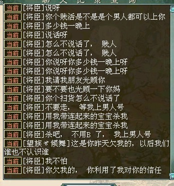我个人阐述点个人看法吧,我认为不管游戏里有任何恩怨,游戏解决就好了!为何要牵扯到人家的现实生活呢?难道不觉得这样更降低了自己的人品么? |